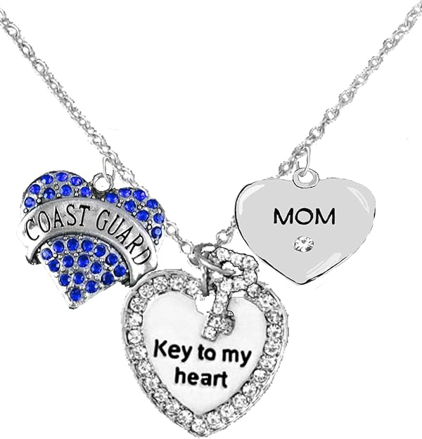 Coast Guard Mom, Key to My Heart, Crystal Mom Heart Charm Necklace, Ad – Cardinali®Jewelry