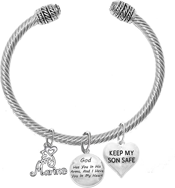 • Marine Mom, My Son, God Has You In His Arms And I Have You In My Heart, Adjustable, Hypoallergenic Safe, No Nickel, Lead, Or Poisonous Cadmium In Bracelet