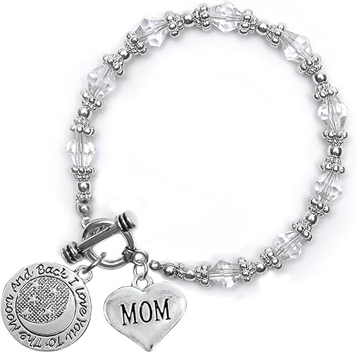 • Mom, I Love You To The Moon And Back Clear Crystal Charm Bracelet, Hypoallergenic, Safe, Nickel, Lead & Cadmium Free.