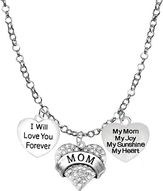 • Mom, " I Will Love You Forever, My Mom, My Joy, My Sunshine, My Heart", Adjustable Necklace, Hypoallergenic, Safe-Nickel, Lead, Free