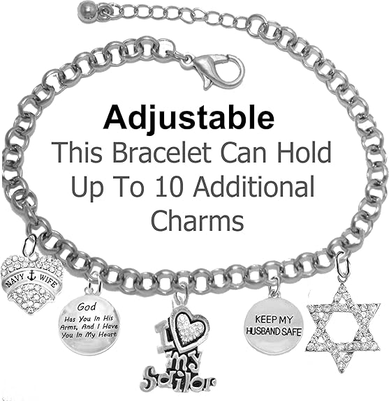 Navy Wife Bracelet, US Navy Bracelet, Navy,Navy Mom, Sailors Wife,Navy Bracelet, Sailor's Bracelet, Navy Jewelry, US United States Navy, Jewish Navy Bracelet, Hypoallergenic, Adjustable 4 To 10 Inches