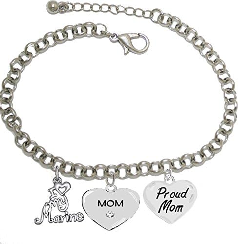 Proud Marine Mom Heart Bracelet, Hypoallergenic, Will NOT Irritate Anyone with Sensitive Skin. Safe- Nickel, Lead and Cadmium Free