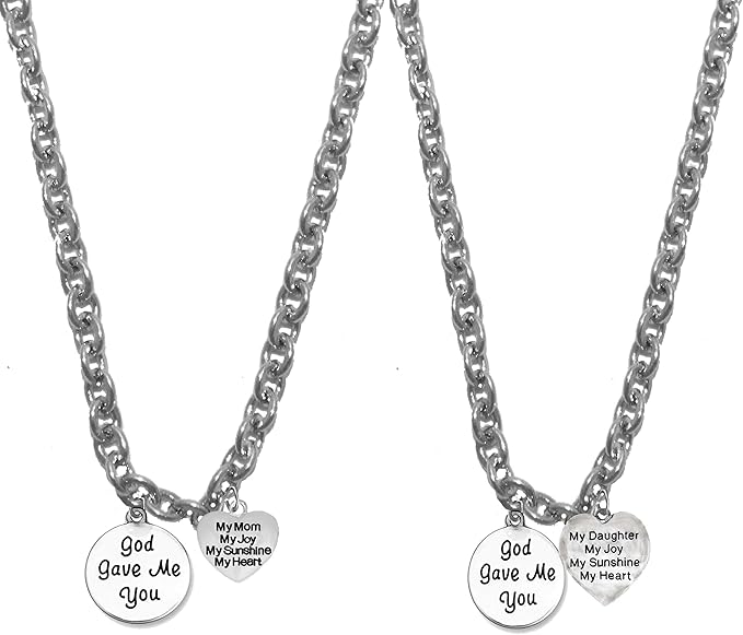 Very Special Mother Daughter, God Gave Me You, My Mom, My Daughter 18 Inch Necklaces(2),STERLING SILVER Solid .925 Sterling, Not Plated Or Coated.Cable Chain Necklaces,Charm-Nickel, Lead,Cadmium Free