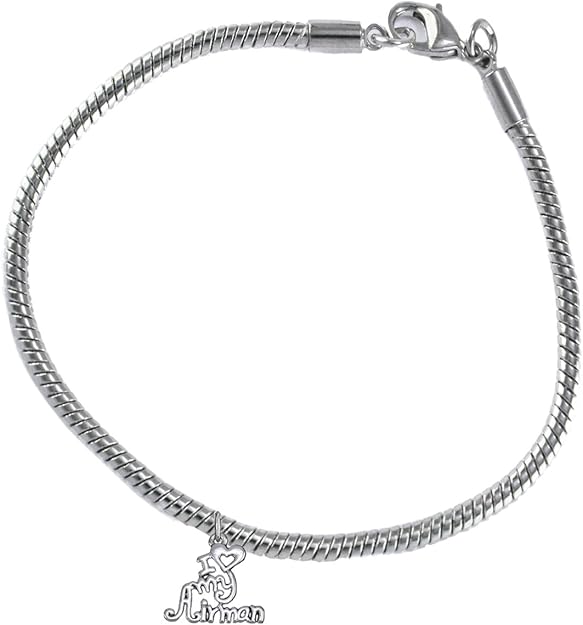 • Air Force, I Love My Airman, Snake Chain Bracelet Hypoallergenic, Safe-Nickel, Lead, Cadmium Free