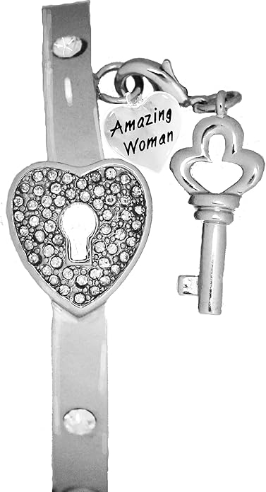 • Amazing Women, "The Key To My Heart Cuff Crystal Bracelet, "It Really Locks!" Hypoallergenic, Safe-Nickel, Lead, Free