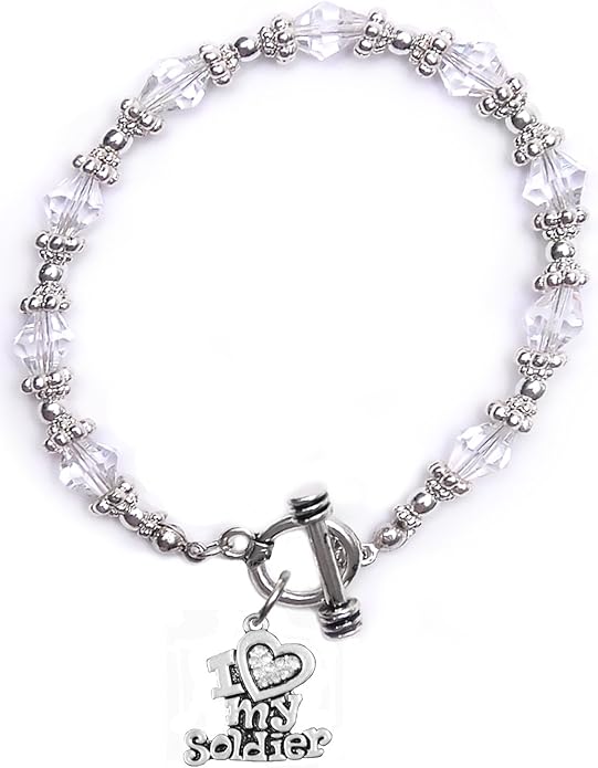 Army, I Love My Soldier, Clear Crystal Bracelet Hypoallergenic, Safe-Nickel, Lead, Cadmium Free