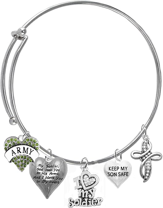 Army, My Soldier, God Has You in His Arms and I Have You in My Heart, Genuine Crystal Cross, Adjustable Bracelet, Hypoallergenic Safe, No Nickel, Lead, Or Poisonous Cadmium