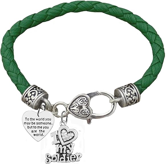 Army, To The World You May Be Someone, But To Me You Are The World, On A Genuine Green Leather Bracelet, Hypoallergenic Safe, No Nickel, Lead, Or Poisonous Cadmium In Bracelet