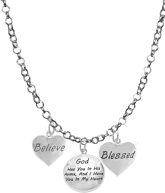 Believe, God Has You In His Arms, And I Have You In My Heart, Blessed, Adjustable Necklace, Hypoallergenic, Safe-Nickel, Lead, Cadmium Free