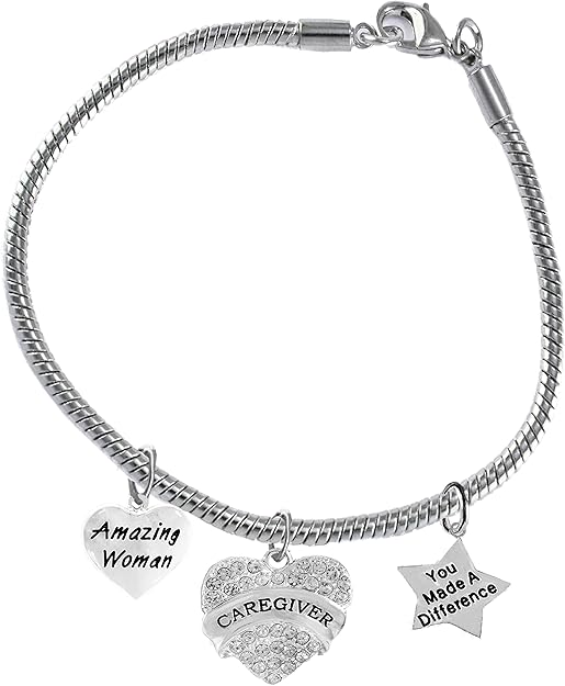 • Caregiver, Nurse, RN, LPN, " You Made A Difference ", " Amazing Women ". Snake Chain Bracelet, Hypoallergenic, Safe-Nickel, Lead, Free