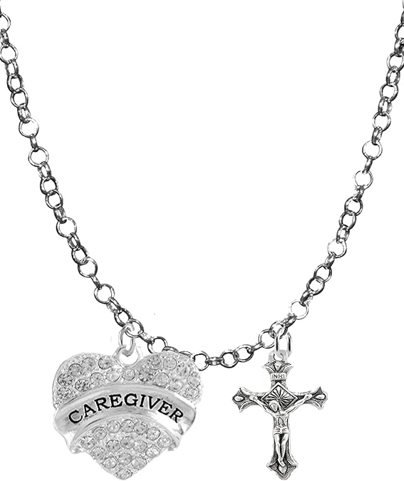 • Caregiver, RN, Nurse, Crucifix Cross, Adjustable Charm Necklace, Hypoallergenic, Safe-Nickel, Lead, Free