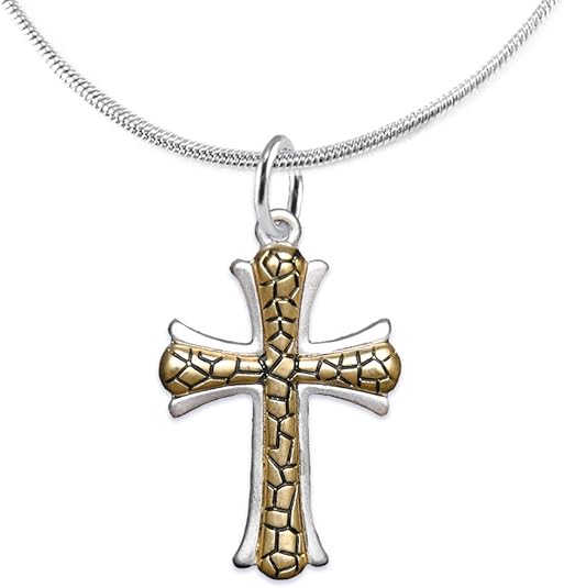 Cross Two Tone Matt Gold Ikarian Pattern, Adjustable Necklace Hypoallergenic, Safe-Nickel, Lead, and Cadmium Free