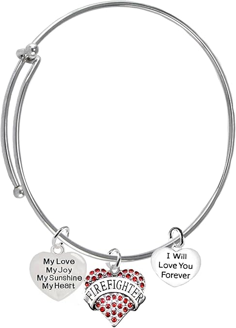• Firefighter, My Love, My Joy, My Sunshine, I Will Love You Forever Bracelet, Hypoallergenic, Safe-Nickel, Lead, Free