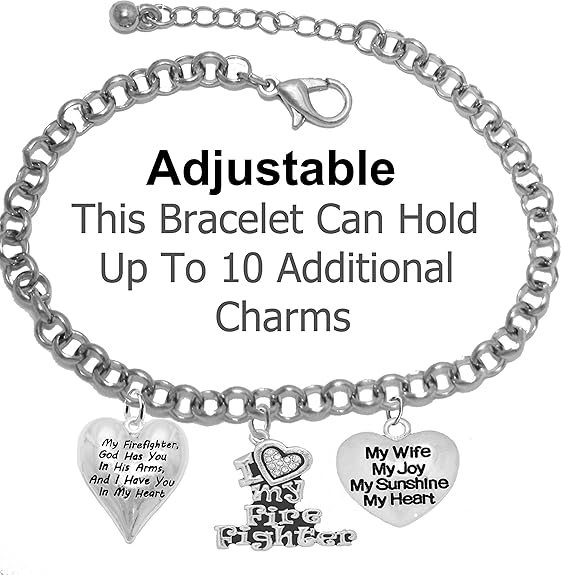 Firefighter's Wife, Firefighters Wife Gifts, Wife Gift, Firefighters Gifts, " My Firefighter, God Has You In His Arms, I Have You In My Heart " Adjustable Bracelet, Hypoallergenic, Safe-Nickel, Lead, Free