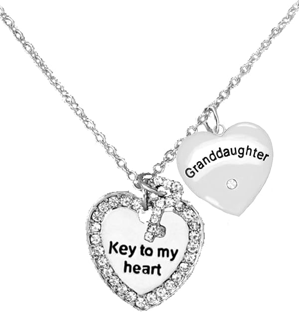 Granddaughter Key to My Heart and Granddaughter Genuine Crystal Heart, – Cardinali®Jewelry