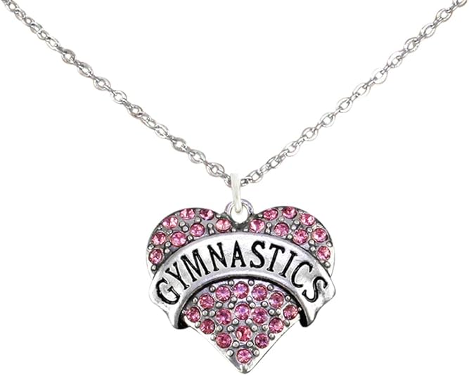 Gymnastics Crystal Pink Heart Necklace, Adjustable, Hypoallergenic, Ni – Cardinali®Jewelry