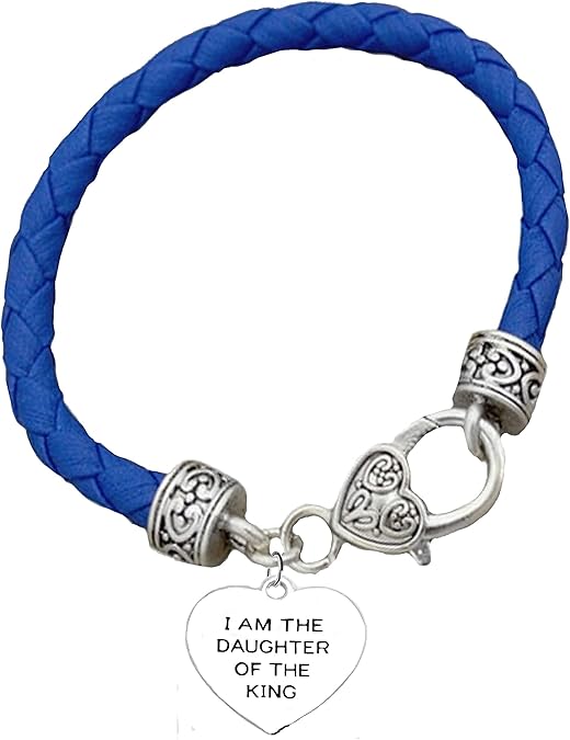 I Am The Daugther Of The King Heart Genuine Blue Leather Bracelet, Saf – Cardinali®Jewelry
