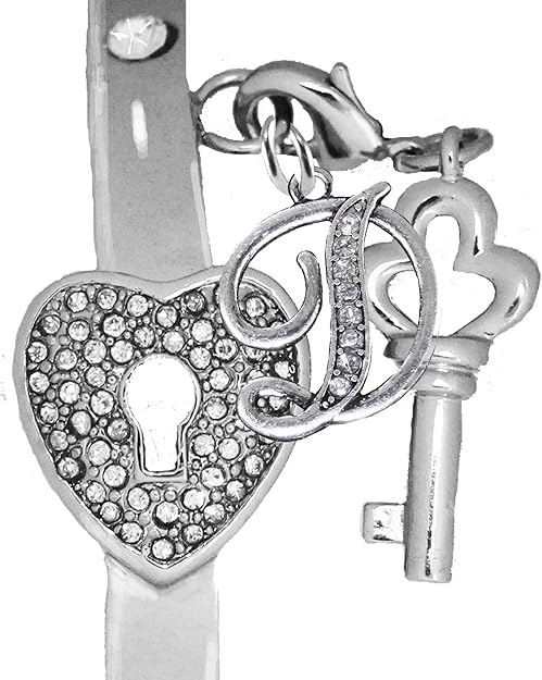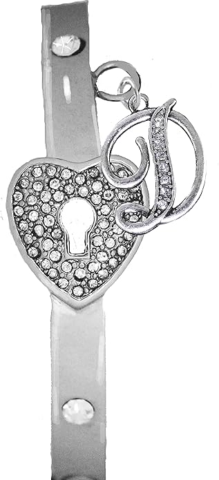 It Really Locks!, The Key to My Heart, Initial D, Cuff Crystal Bracelet, Hypoallergenic, Safe-Nickel, Lead, Free