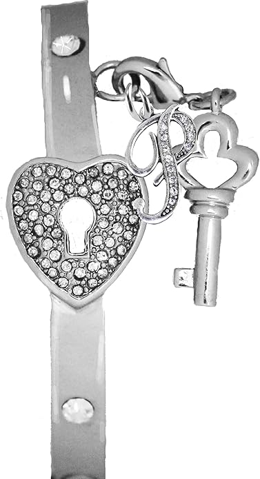 • It Really Locks!, The Key To My Heart, "Initial P", Cuff Crystal Bracelet, Hypoallergenic, Safe-Nickel, Lead, Free