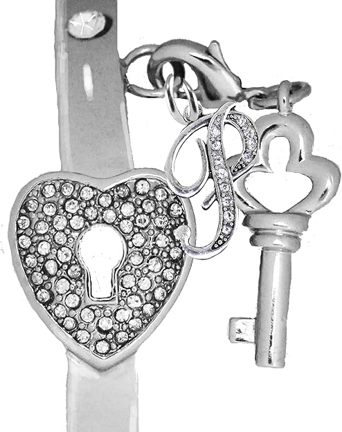 It Really Locks!, The Key To My Heart, "Initial P", Cuff Crystal Bracelet, Hypoallergenic, Safe-Nickel, Lead, Free