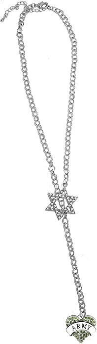 • Jewish Army Crystal Heart, Through A Crystal Star Of David, Rolo Chain Necklace Hypoallergenic, Safe-Nickel, Lead, And Cadmium Free