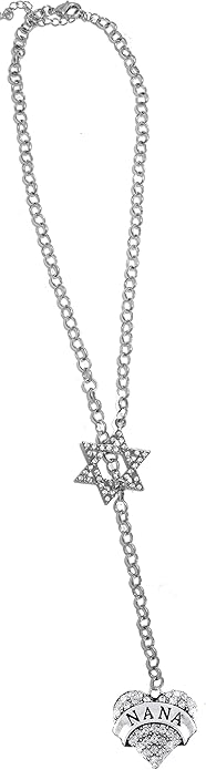 • Jewish Nana Rolo Chain Necklace Hypoallergenic, Crystal Heart And Star Of David, Safe-Nickel, Lead, And Cadmium Free Cardinali Jewelry