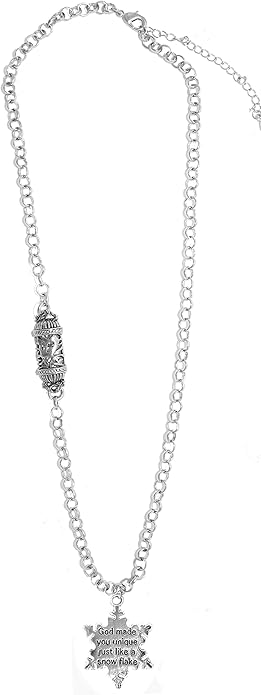 Jewish Snowflake, God Made You Unique Just Like A Snowflake, And A Mezzuah On A Rolo Chain Necklace Hypoallergenic, Safe-Nickel, Lead, And Cadmium Free