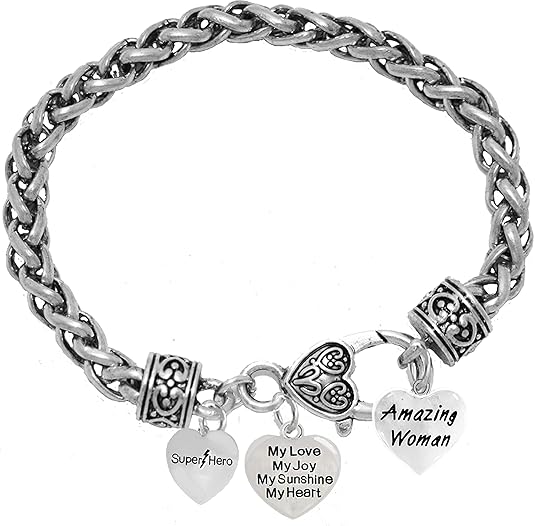 Love, Super Hero, My Love, My Joy, My Sunshine, My Heart, Amazing Womam, Bracelet Hypoallergenic Safe- No Nickel. Lead, Or Poisonous Cadmium