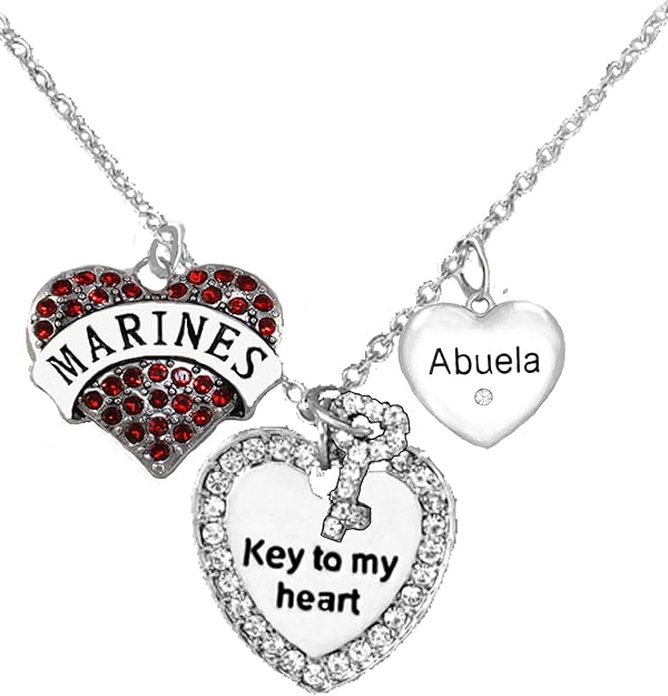 Marine Abuela, Key to My Heart, Crystal Abuela Heart Charm Necklace, Hypoallergenic, Safe-Nickel, Lead, Free