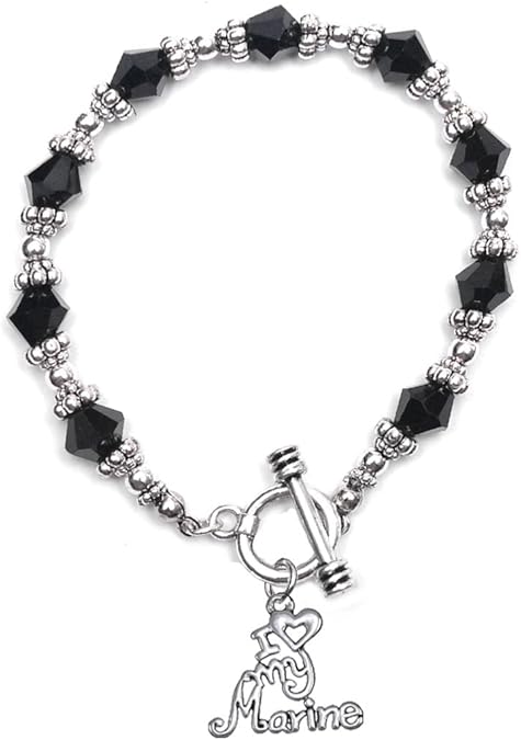 Marine, I Love My Marine, Black Crystal Bracelet Hypoallergenic, Safe-Nickel, Lead, Cadmium Free