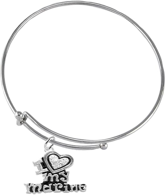 • Marine I Love My Marine, Crystal Heart Bracelet, Hypoallergenic, Safe-Nickel, Lead, Free