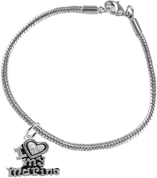 • Marine I Love My Marine, Crystal Heart, Bracelet, Hypoallergenic, Safe-Nickel, Lead, Free