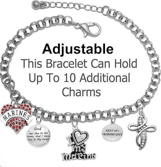 • Marine, My Husband, God Has You In His Arms And I Have You In My Heart, Adjustable, Hypoallergenic Safe, No Nickel, Lead, Or Poisonous Cadmium In Bracelet