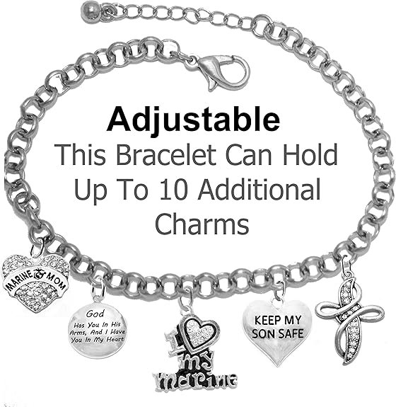 Marine, My Son, God Has You In His Arms And I Have You In My Heart,Genuine Crystal Cross, Adjustable, Hypoallergenic Safe, No Nickel, Lead, Or Poisonous Cadmium In Bracelet