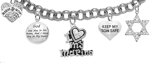 Marine, My Son, God Has You In His Arms And I Have You In My Heart,Genuine Crystal Star Of David, Adjustable, Hypoallergenic Safe, No Nickel, Lead, Or Poisonous Cadmium In Bracelet