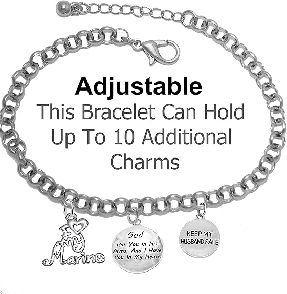 Marine Wife, My Husband, God Has You In His Arms And I Have You In My Heart, Adjustable, Hypoallergenic Safe, No Nickel, Lead, Or Poisonous Cadmium In Bracelet