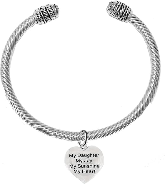 Message Bracelet, My Daughter, My Joy, My Sunshine, My Heart, Breathtaking Adjustable Silver Cable Cuff Bracelet, Hypoallergenic, Safe-Nickel, Lead, Cadmium Free