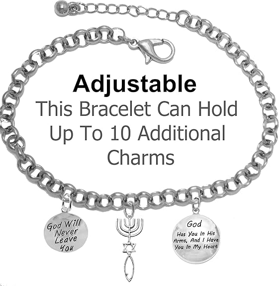 Messianic Seal of Jerusalem, God Will Never Leave You, God Has You In His Arms And I Have You In My Heart, On A Adjustable Rolo Chain Bracelet, Hypoallergenic, Safe-Nickel, Lead, Cadmium Free