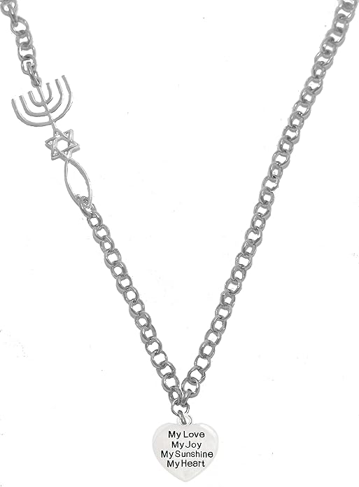 My Love, My Joy, My Sunshine, My Heart, Messianic Seal of Jerusalem, Adjustable Necklace with Menorah, Star of David, Christian Fish, Hypoallergenic, Safe-Nickel, Lead, Cadmium Free