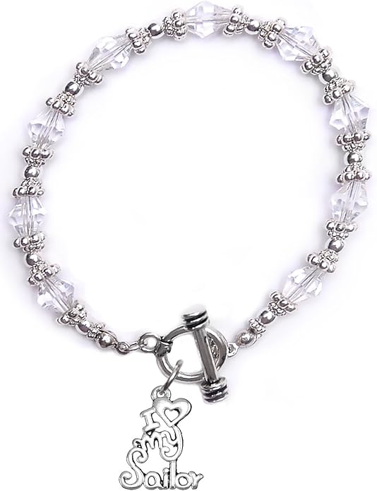 Navy, I Love My Sailor, Clear Crystal Bracelet Hypoallergenic, Safe-Nickel, Lead, Cadmium Free
