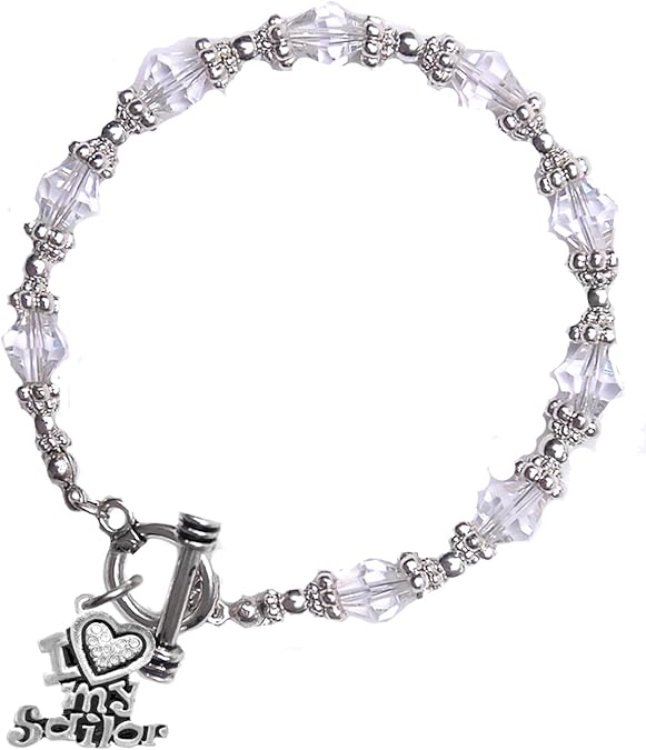 Navy, I Love My Sailor, Crystal Heart, Bracelet, Hypoallergenic, Safe-Nickel, Lead, Free