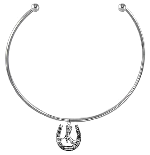 New Exciting Fashion Western Style, The Western Choker Necklace With A Cowgirl Boot Inside A Horseshoe, Silvertone Finish. What A Wonderful Gift For Yourself, Or Someone Special. Made In The USA By Veterans 2024