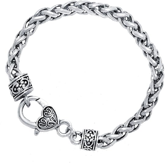 • B1 - Silver-tone, Wheat Chain, Heart-Shaped Lobster Clasp Bracelet with Charm/s on Clasp. Bracelet Chain is 7½ inches.