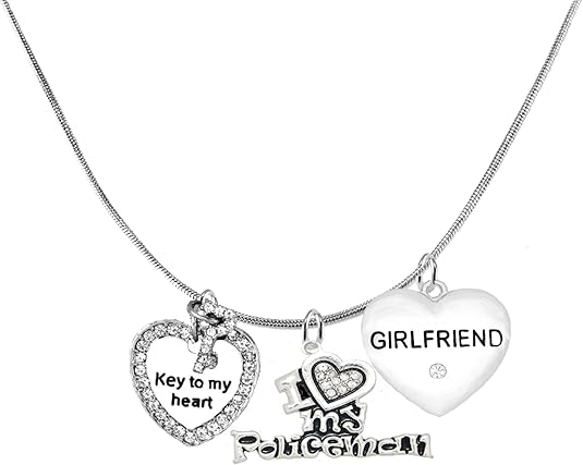 Policeman's, I Love My Policeman, Girlfriend, Key To My Heart, Adjustable Snake Chain Necklace., Hypoallergenic, Safe-Nickel, Lead, Free