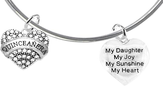 Quinceanera Genuine Crystal Heart, My Daughter, My Joy, My Sunshine, My Heart, Hypoallergenic Adjustable Miracle Wire Bracelet, Safe-Nickel, Lead & Cadmium Free!