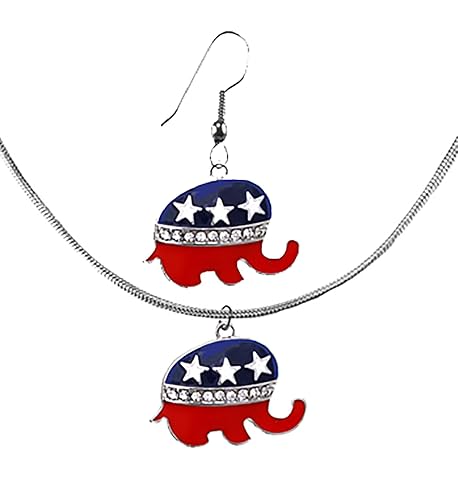Republican Party Jewelry Set Silvertone Genuine Austrian Cut Crystal On Fishhooks. Made With Posts Upon Request, No Charge. Beautiful Adjustable Snake Chain Matching Austrian Cut Crystal Necklace. What A Wonderful Gift For Yourself, Or A Friend, Or Family Member, Or As A Donor Gift. Hypoallergenic, No Nickel, No Lead, No Cadmium In The Metal. 2024 Assembled And Manufactured In Houston,Texas. US Veteran Owned.
