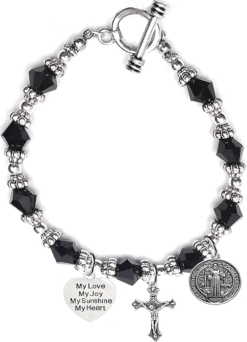 • Saint Benedict Protective Charm, My Love, My Joy, My Sunshine, My Heart, And Prayer, Protect Me From Harm, From Evil, Hypoallergenic Black Crystal Bracelet, Nickel, Lead, Cadmium Free