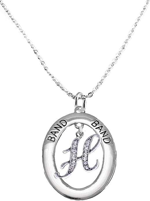 School Band, Music, Orchestra Jewelry, Hypoallergenic Adjustable Necklace, Safe-Nickel, Lead and Cadmium Free (Crystal H)