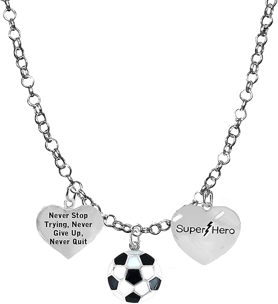 Soccer, Never Stop Trying, Never Give Up, Super Hero, " Soccer Player Jewelry" Adjustable Necklace Hypoallergenic, Safe-Nickel, Lead Free