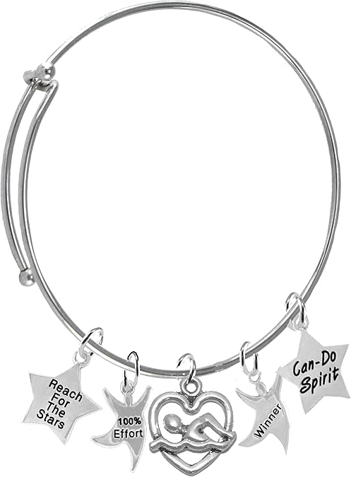• Swim, " Reach For The Stars " 5 Charm Adjustable Bracelet, Hypoallergenic, Safe-Nickel Free, No Poisonous Lead Or Cadmium